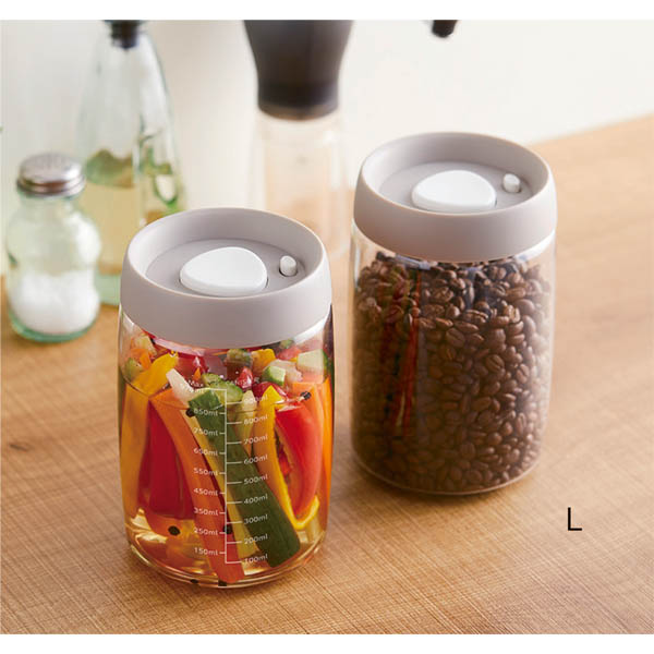 押すだけ簡単!真空保存で鮮度をキープ。便利な目盛り付き。