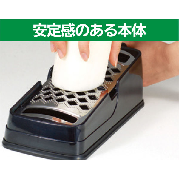 ハンドルと滑り止めでしっかりと固定し、ラクにおろせる。余分な水分を切れる水切り付き。
